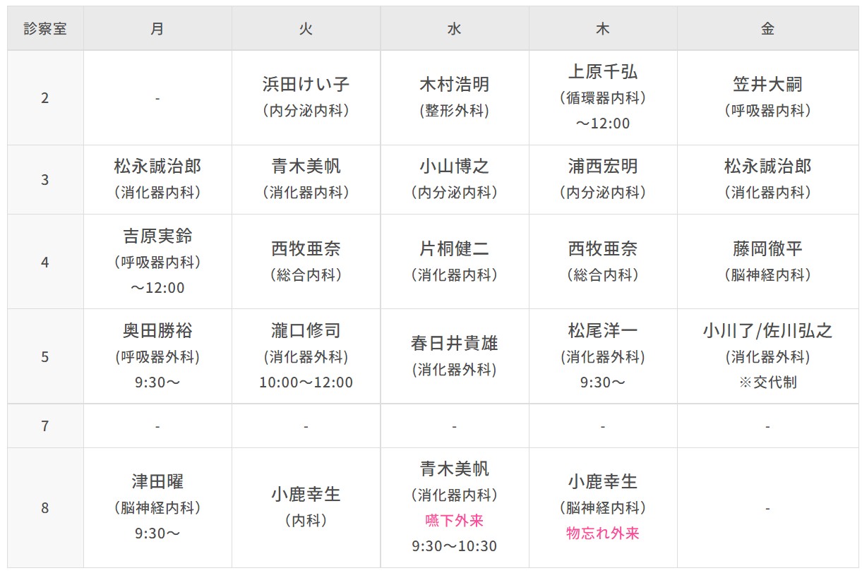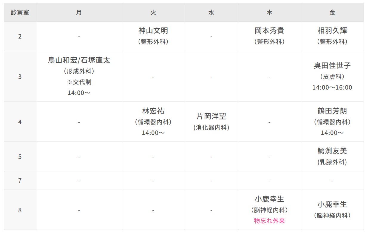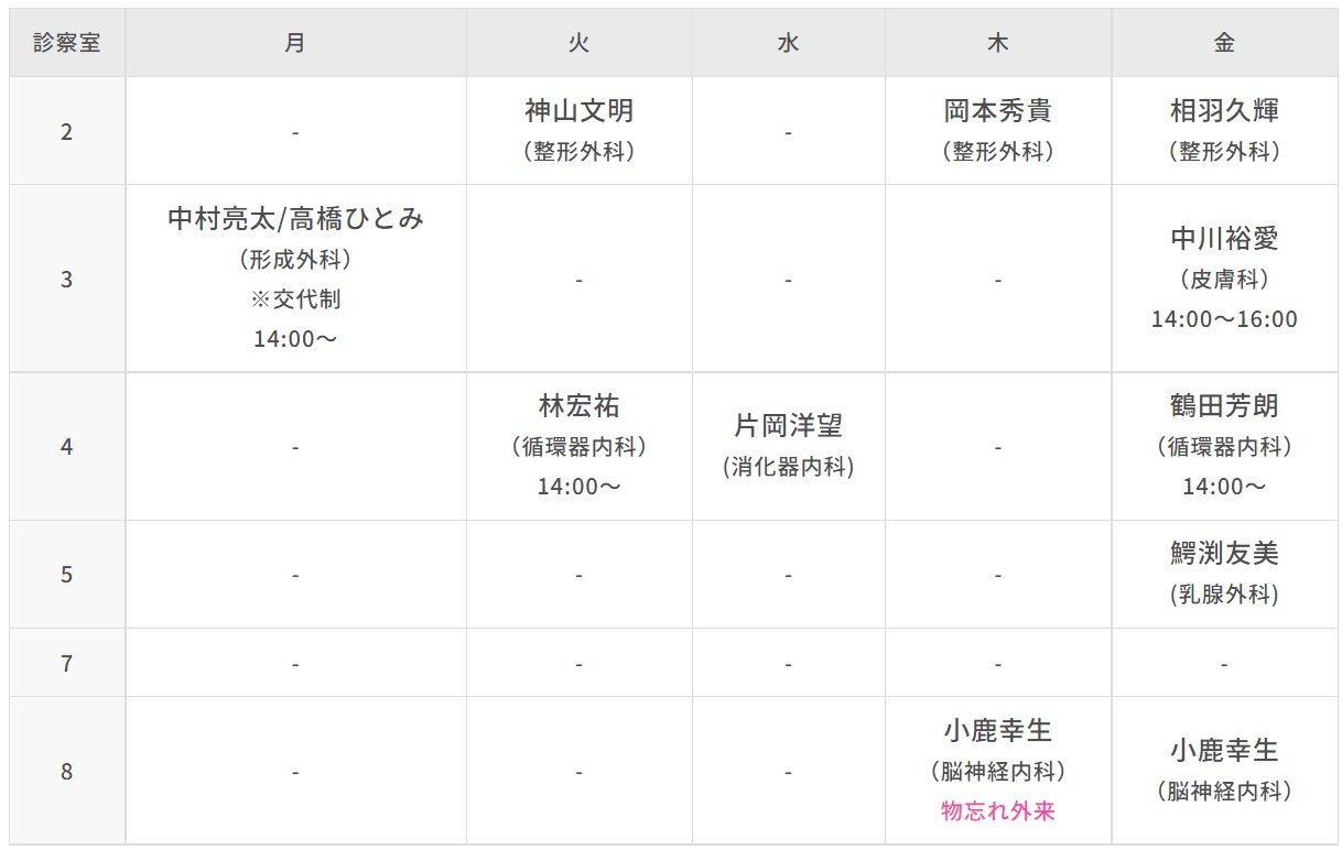 診察室 | 月 | 火 | 水 | 木 | 金 |